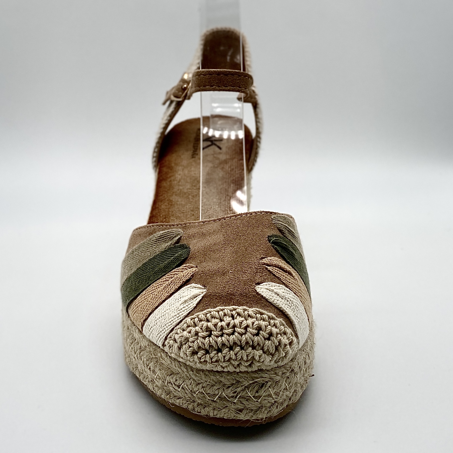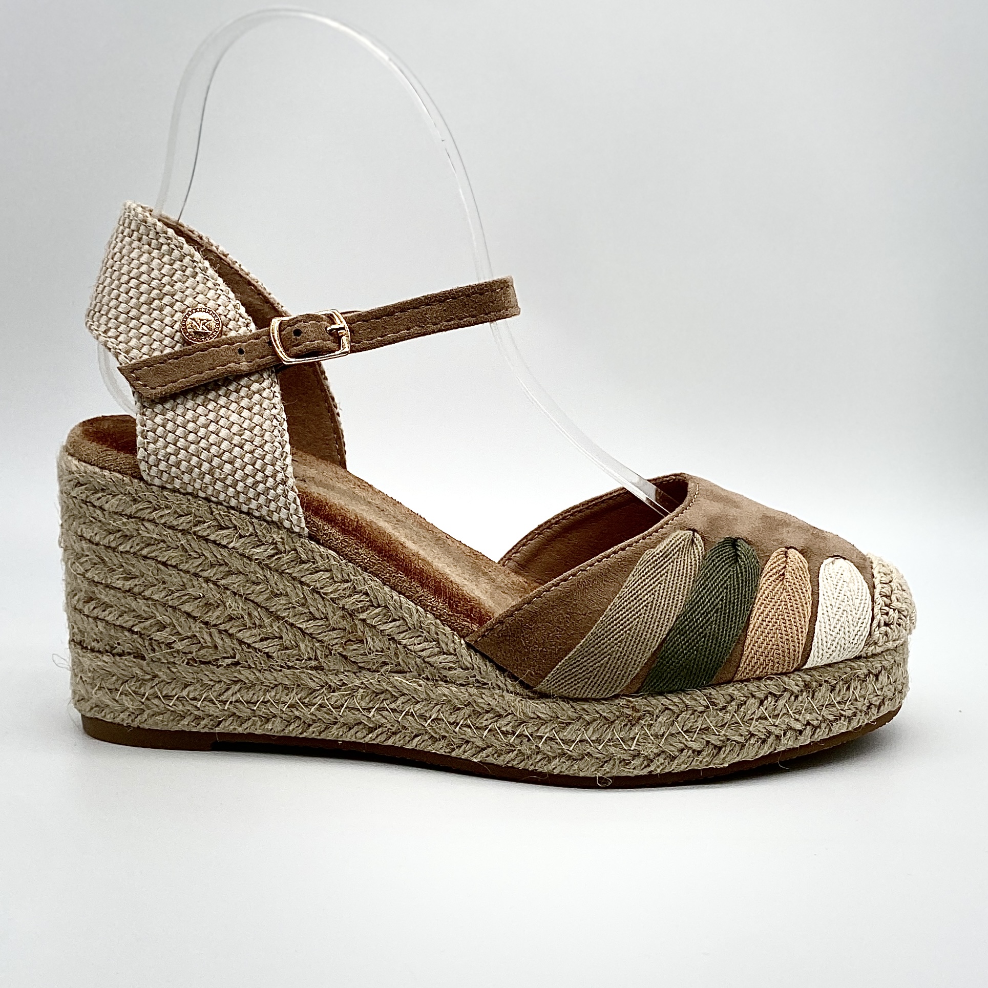 Sandalias de cuña con diseño multicolor, perfecta para darle un toque alegre y veraniego a tus looks. Muy cómoda gracias a su plantilla acolchada y su cuña media con plataforma que aporta estabilidad.