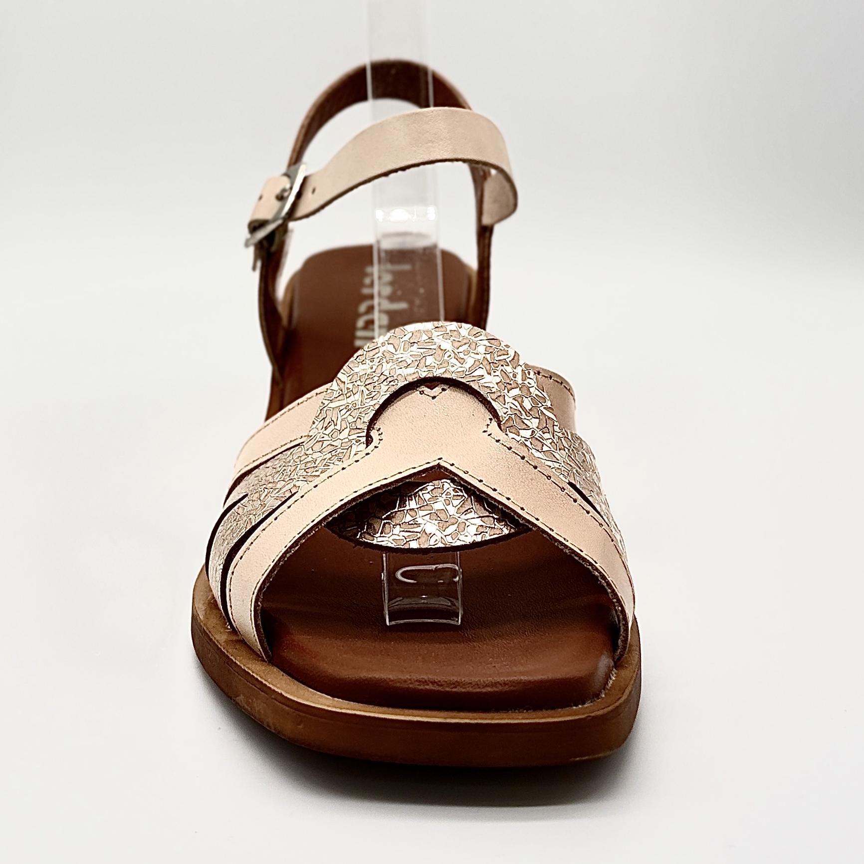 Sandalia de la marca Jordana confeccionada en piel, con un diseño de pala de tiras elegante y atemporal. Un modelo versátil que combina fácilmente con todo tipo de looks.