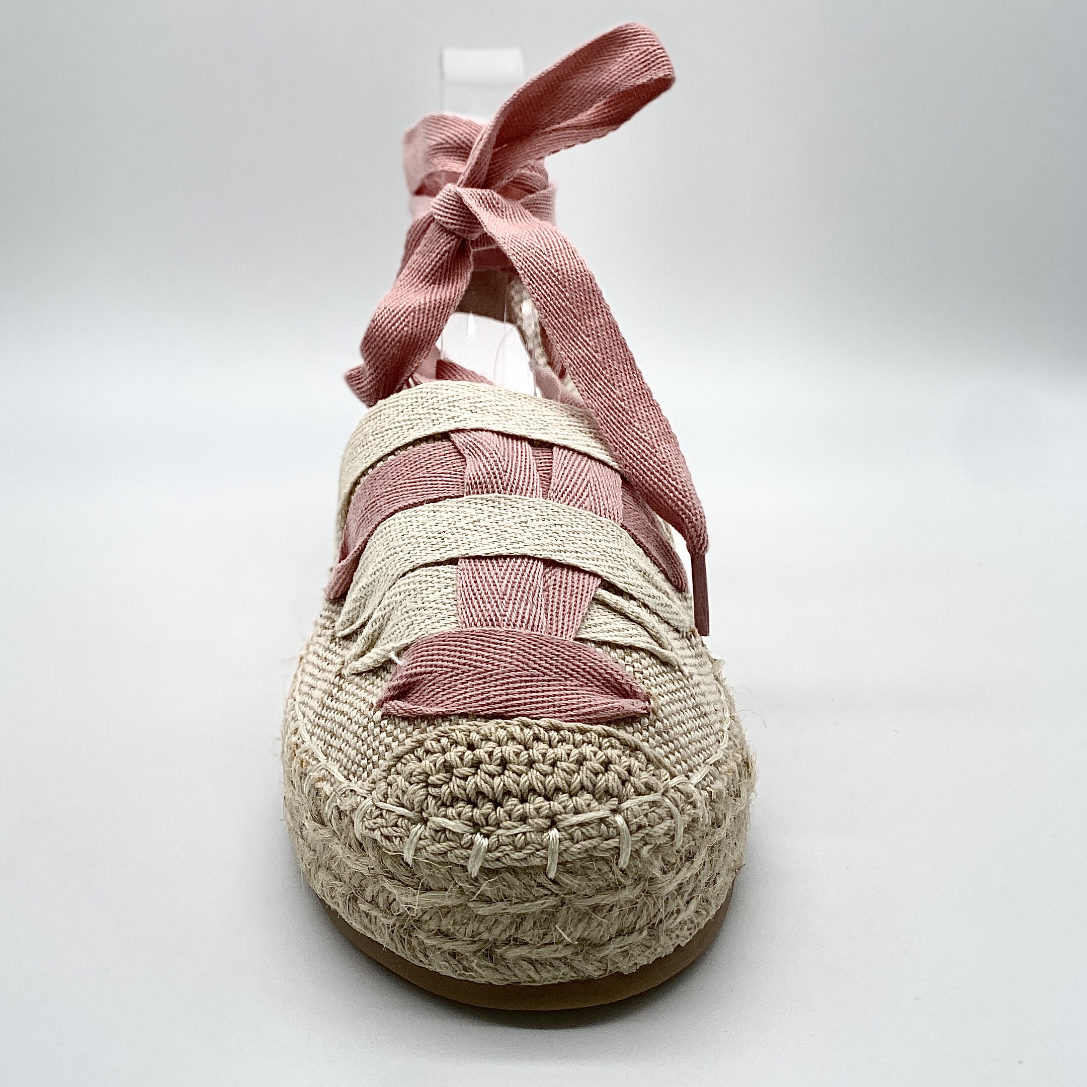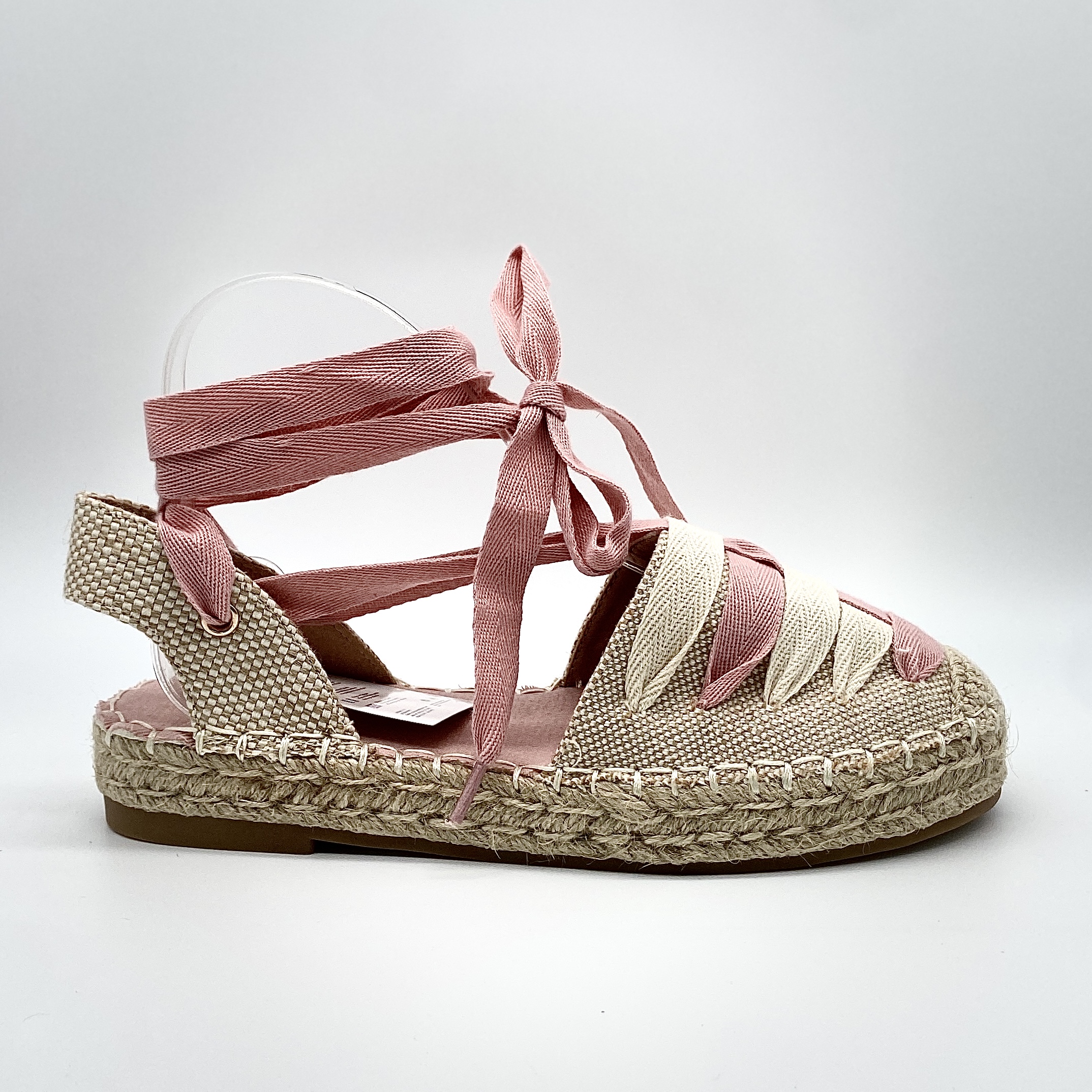 Zapatillas planas estilo esparto, perfectas para un look fresco y veraniego. Su diseño con cintas para atar al tobillo aporta un toque muy actual y femenino.