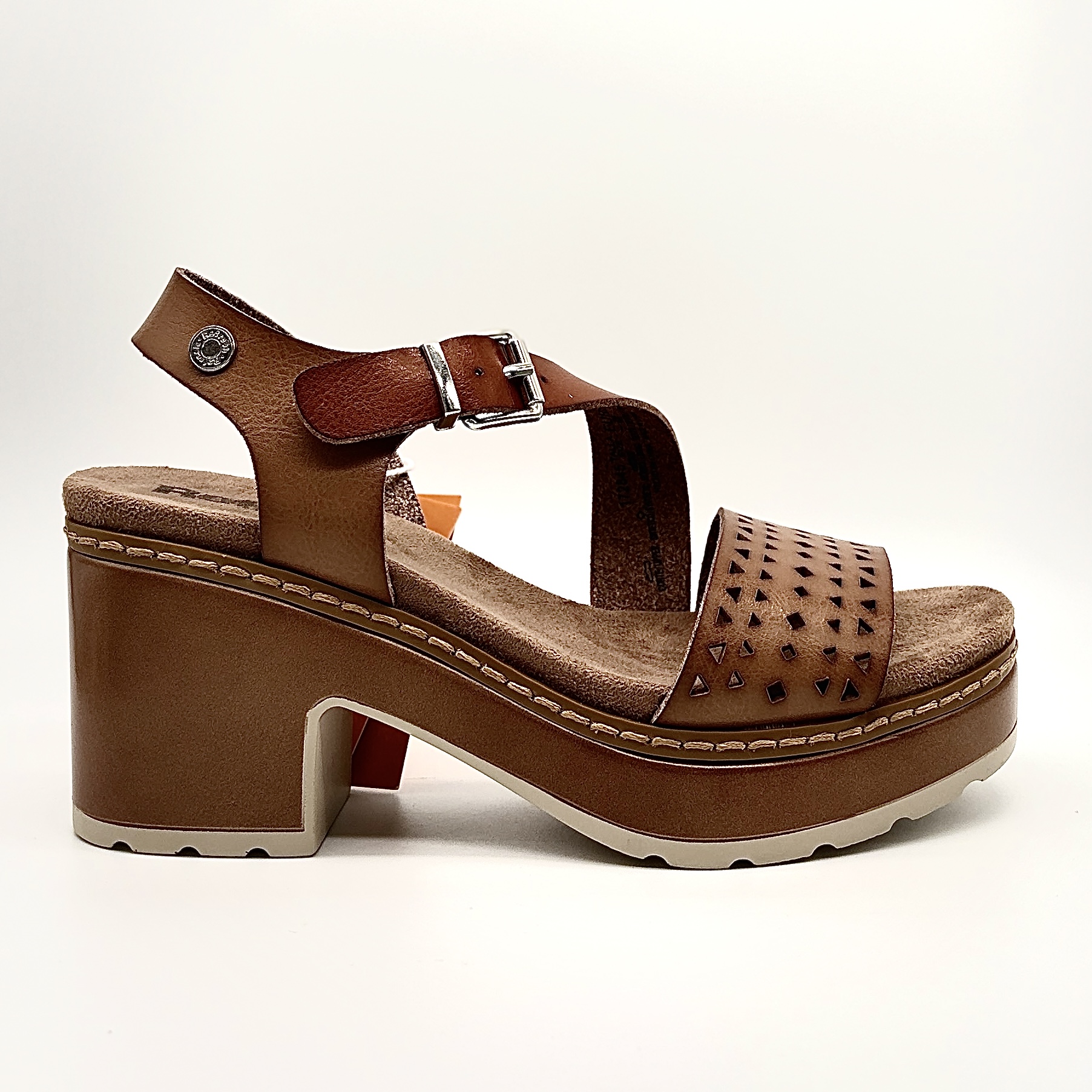 Sandalias de la marca Refresh con tacón ancho y plataforma, con un diseño elegante y muy favorecedor. Su pala calada y detalle de hebilla las convierten en un modelo muy bonito y especial.
