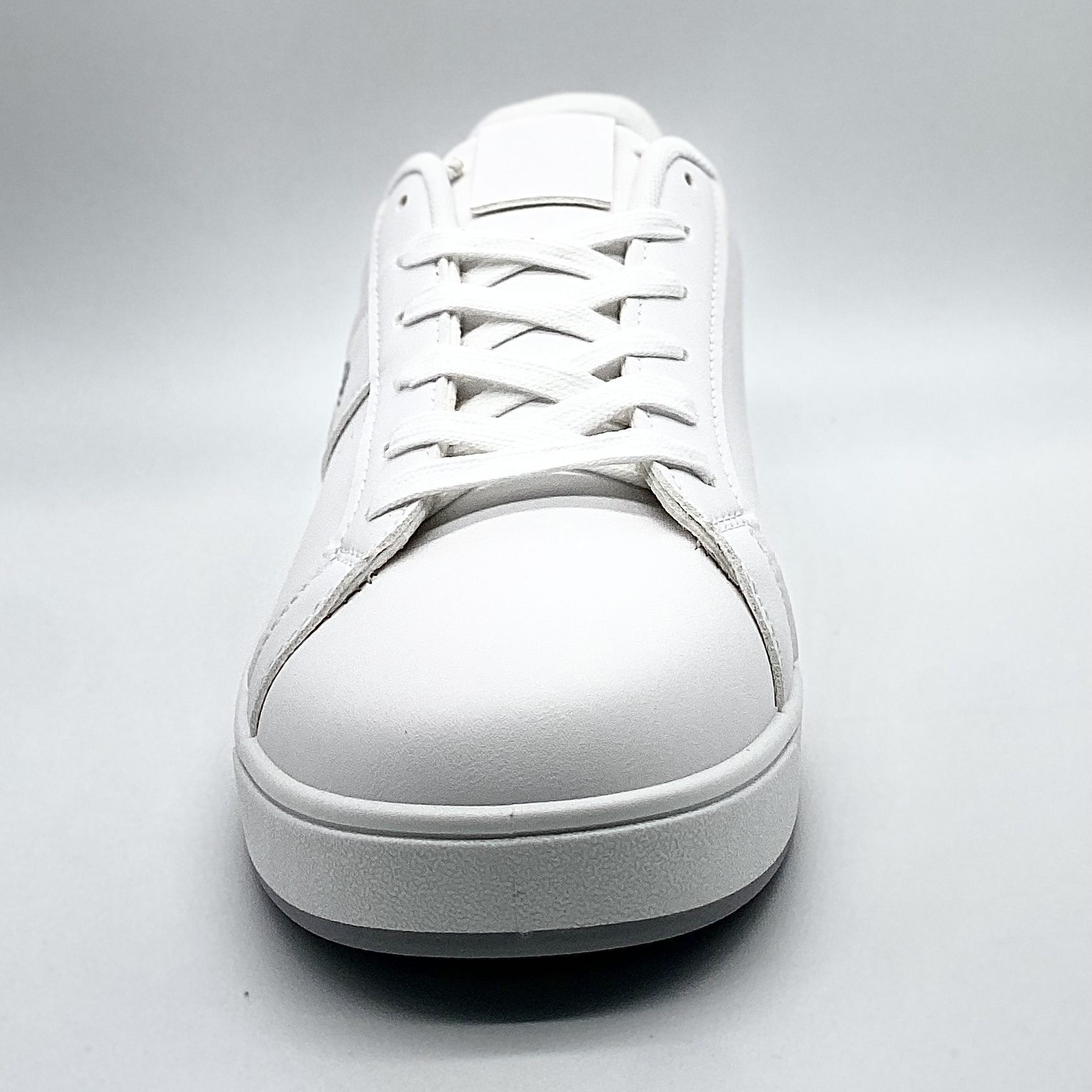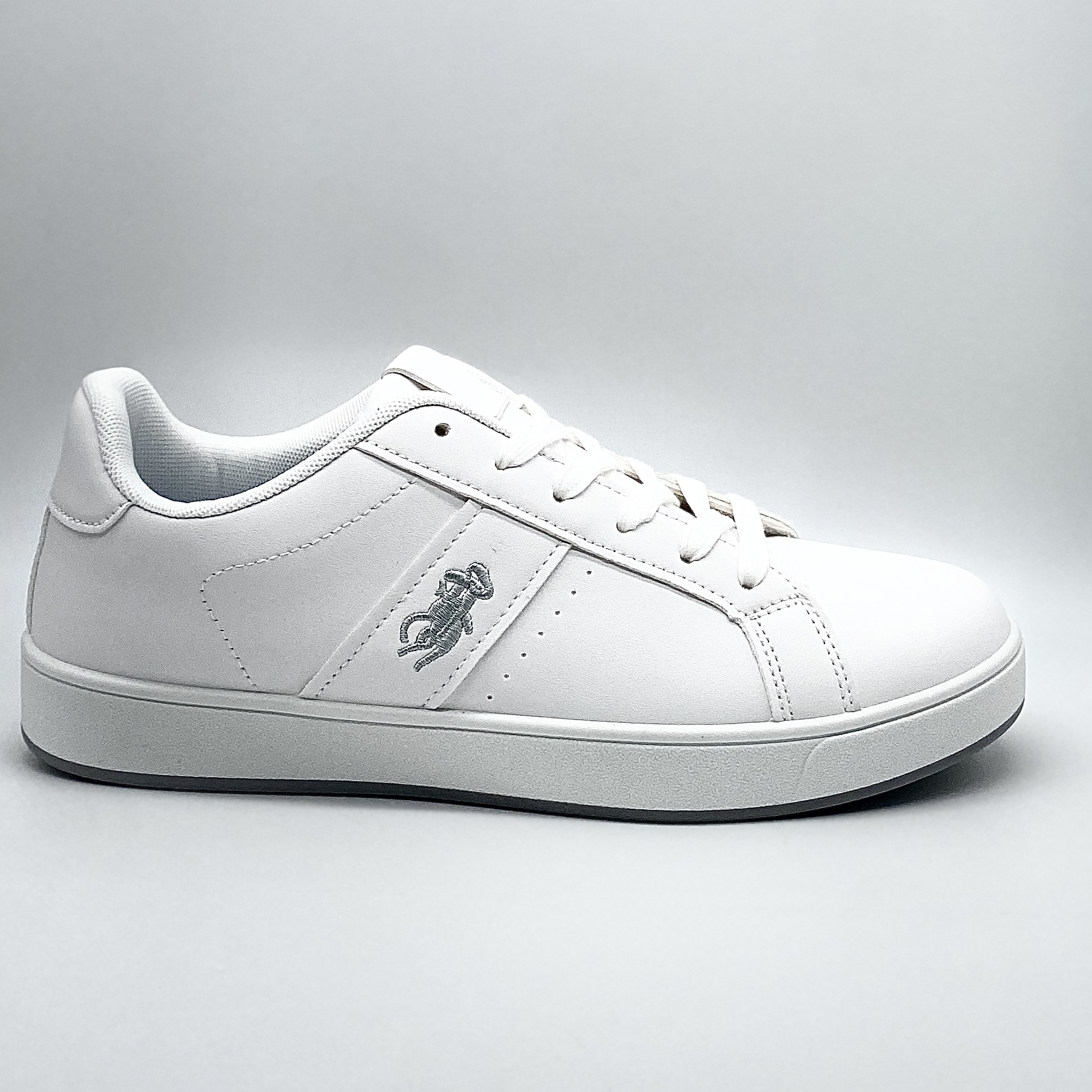 Zapatilla de hombre en color blanco liso, con diseño limpio y elegante. Un modelo muy versátil que combina perfectamente tanto con looks casuales como con traje o ropa más arreglada.